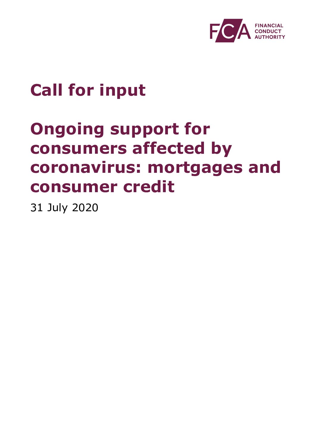 Call for input: Ongoing support for consumers affected by coronavirus: mortgages and consumer credit