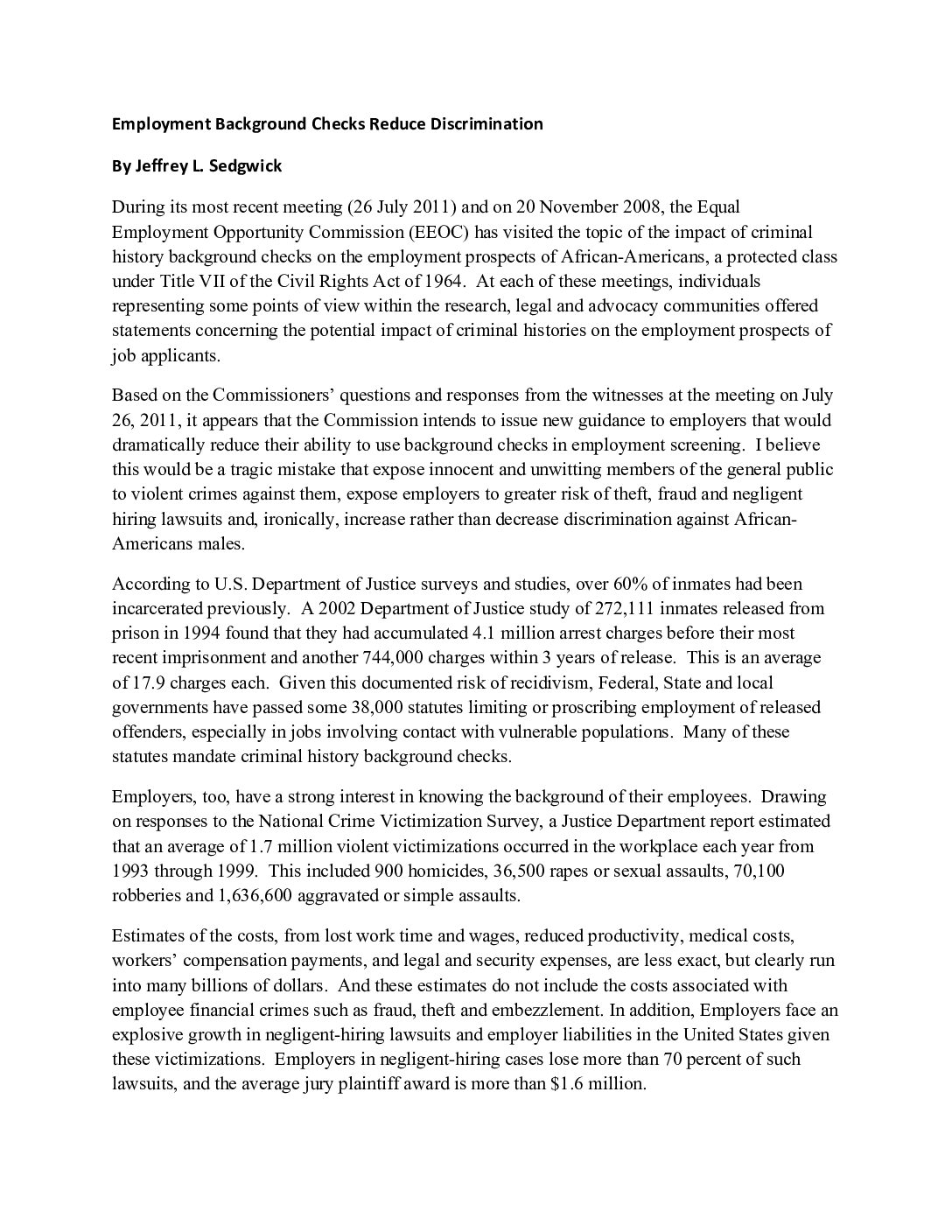 Sedgwick Op-Ed: Employment Background Checks Reduce Discrimination